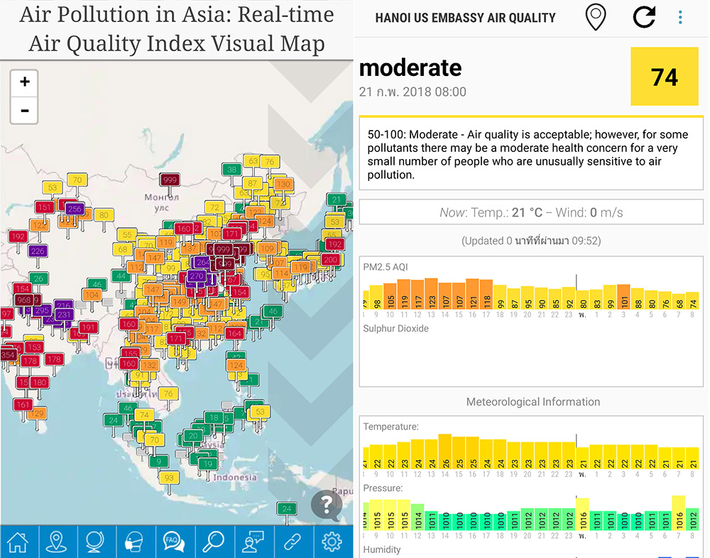 การเฝ้าระวังระดับมลพิษด้วยการโหลดแอพพลิเคชั่นต่างๆ เช่น